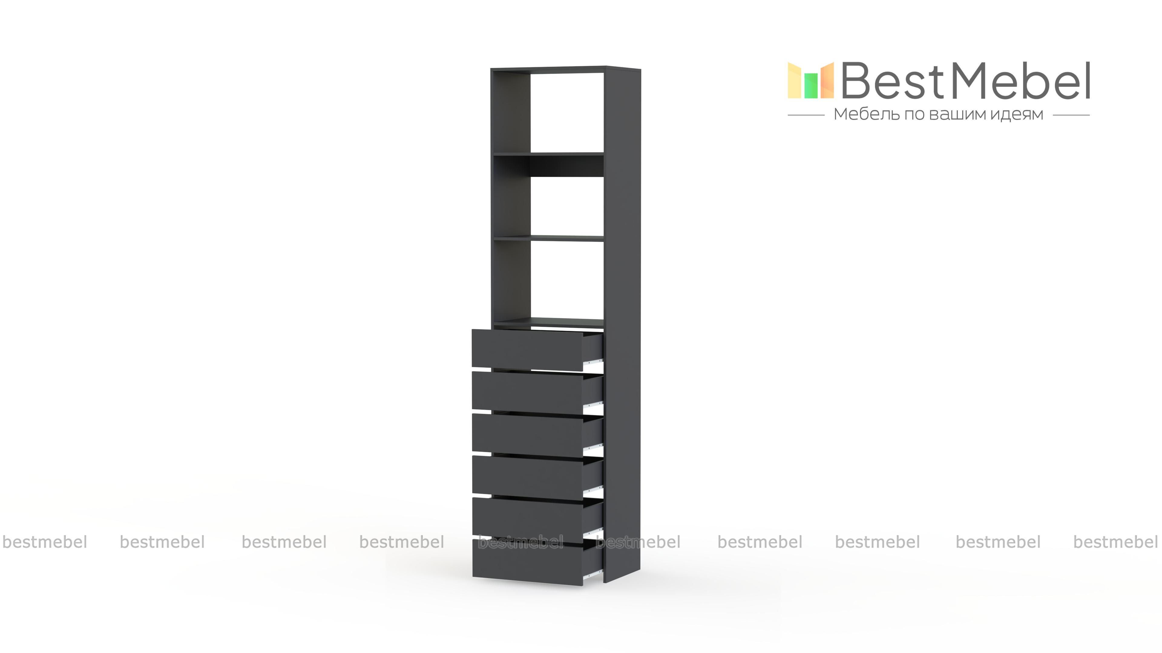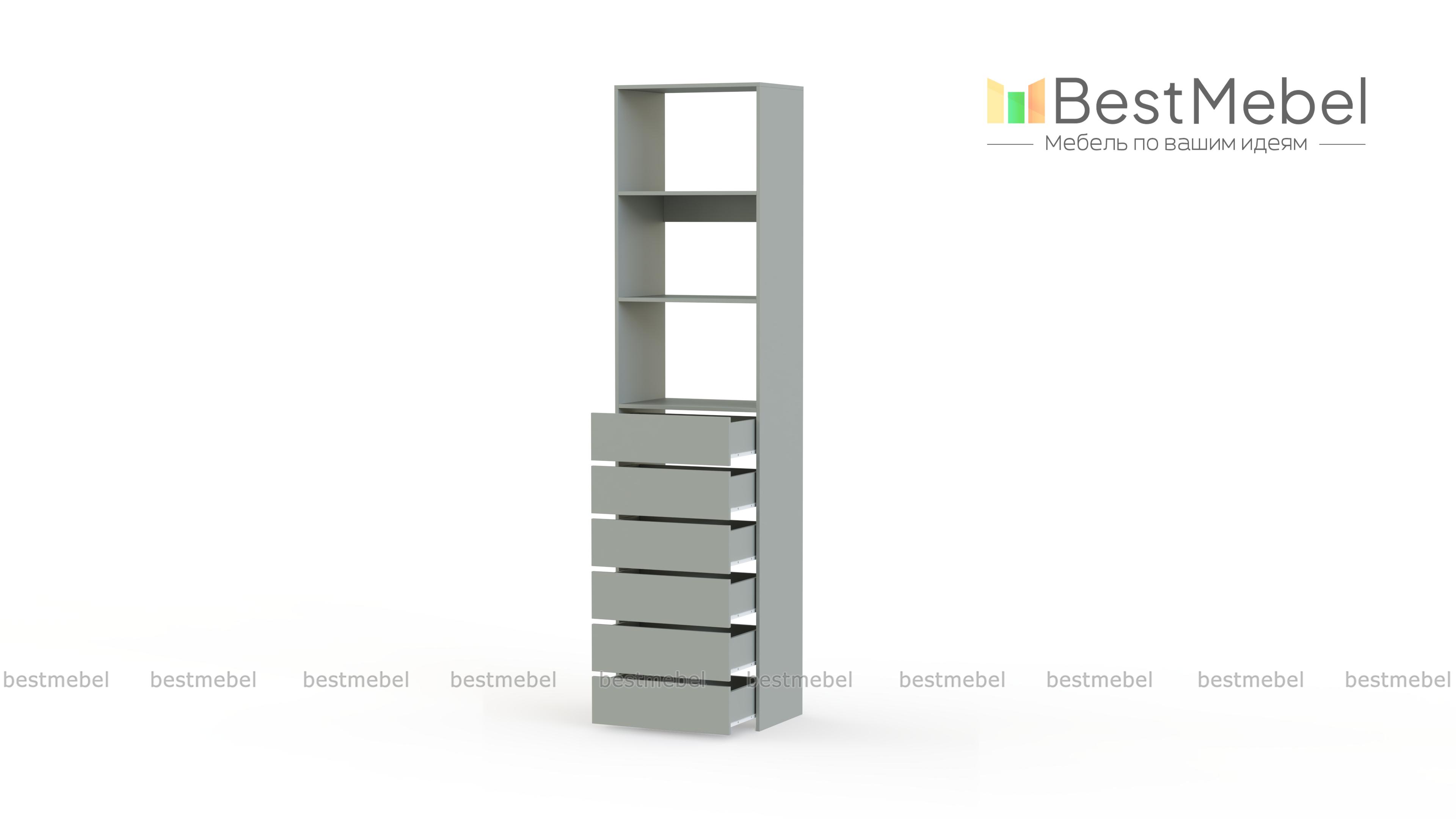 Стеллаж для одежды Мирта 37 BMS поможет оборудовать место для хранения стопок с одеждой, органайзеров с мелочами и сезонных аксессуаров. Разделенный двумя полками в верхней части, стеллаж дополнен шестью выдвижными отделениями. Поверхности из ламинированной ДСП устойчивы к появлению царапин и влаге, надолго сохраняя эстетичный внешний вид. Купить стеллаж для одежды Мирта 37 BMS приглашаем в наш интернет-магазин с индивидуальным подбором цвета и размеров.