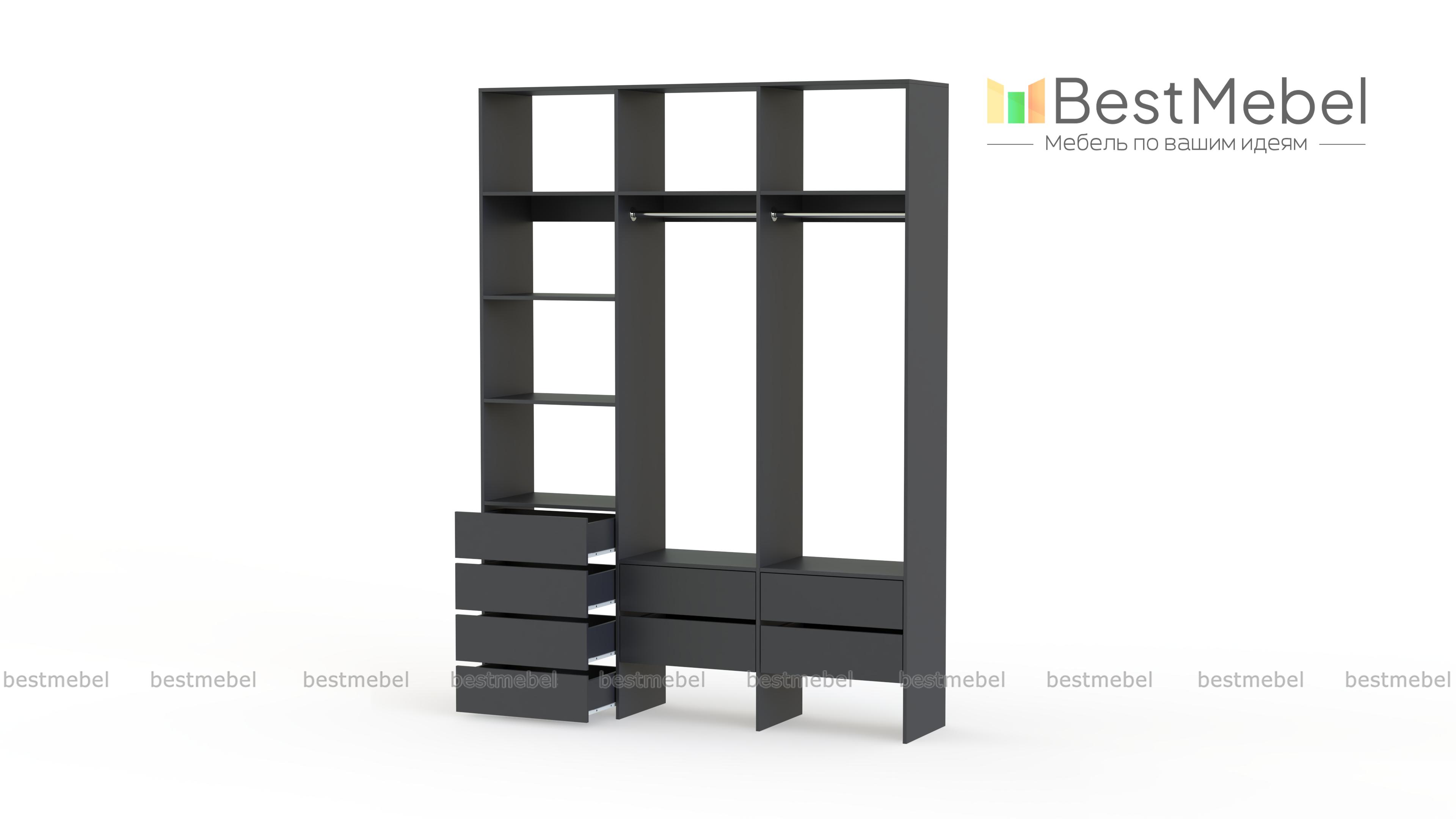 Стеллаж для одежды Мирта 54 BMS станет частью современной прихожей или гардеробной. Конструкция из ламинированной плиты имеет универсальный дизайн, надежна и функциональна. Система хранения трехсекционного стеллажа включает в себя две платяные штанги, ящики для белья и мелочей, ряд верхних и боковых полок, а пространство под ящиками можно использовать для размещения обуви. Купить стеллаж для одежды Мирта 54 BMS приглашаем в наш интернет-магазин, подобрав нужные размеры и цвет по каталогу.