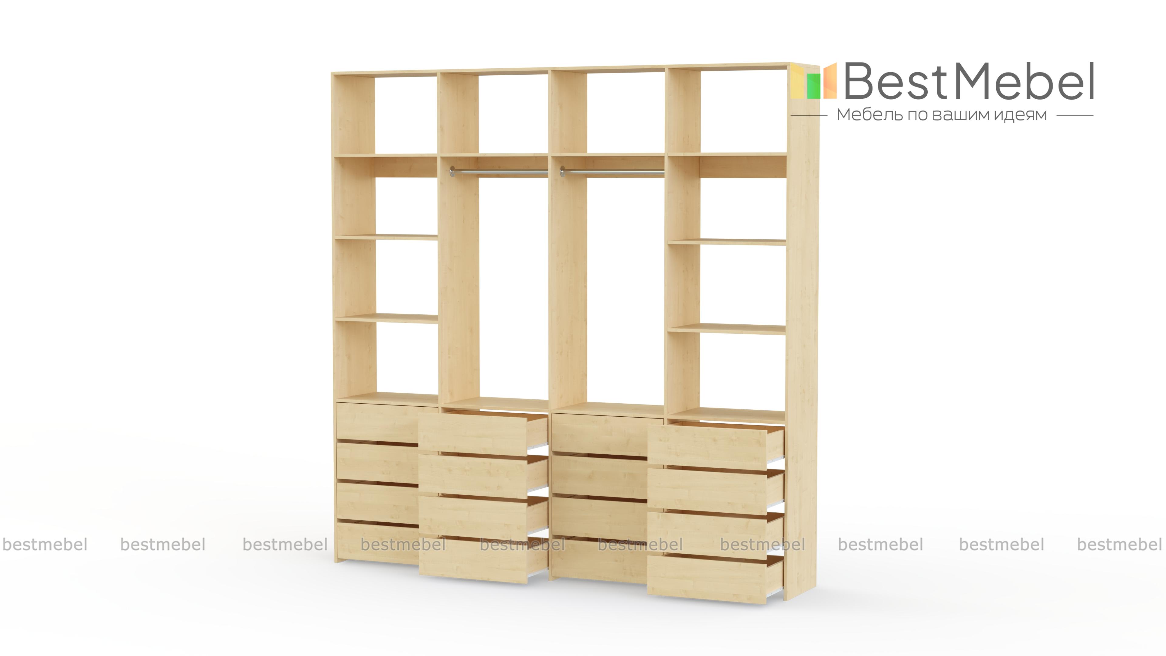 Стеллаж для одежды Мирта 63 BMS — это продуманная система хранения и функциональный современный дизайн. Две штанги и полки помогут разместить вешалки с одеждой, обувные коробки и текстиль, а четыре ряда выдвижных ящиков станут полноценной заменой бельевому комоду. Для изготовления стеллажа использована ламинированная ДСП высокого качества и надежная фурнитура. Купить стеллаж для одежды Мирта 63 BMS с выбором размера и цвета по каталогу приглашаем в наш интернет-магазин.