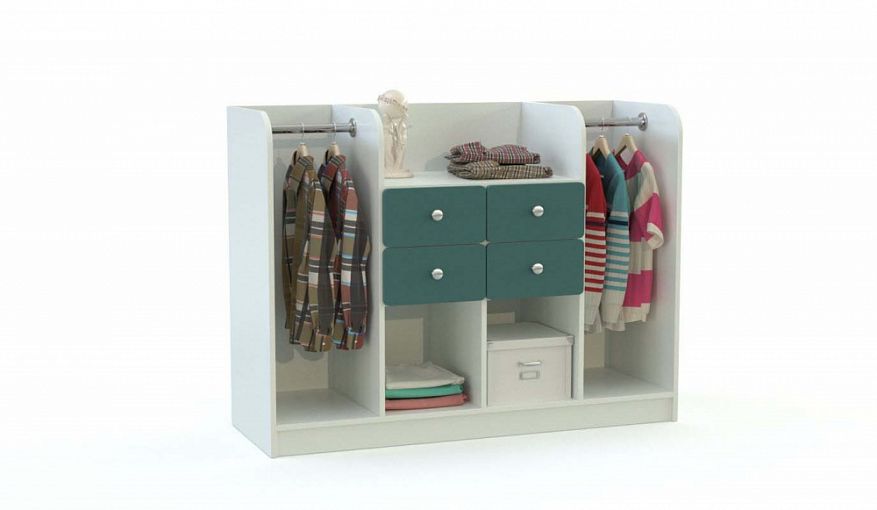 Стеллаж Сабрина 9 BMS отличается вместительностью при компактных размерах, а оригинальный дизайн превращает его в стильный интерьерный акцент. Комбинированная модель с двумя штангами, тремя открытыми секциями и четырьмя выдвижными ящиками объединила функции платяного шкафа и комода. Лаконичный белый корпус со скругленными боковинами дополнен цветным фасадом с ручками-кнопками. Купить стеллаж Сабрина 9 BMS с выбором цвета и фурнитуры вы сможете в нашем интернет-магазине.