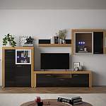 Необычный дизайн гостиной "Невио" Сокме BMS станет украшением современных интерьеров. Благодаря универсальной модульной конструкции модель легко впишется и в малогабаритные, и в просторные помещения. Комплект оборудован тумбой под ТВ, высокой тумбой и навесным шкафом с оригинальными стеклянными вставками и открытой полкой. В оформлении фасадов и корпуса гармонично сочетаются темные и светлые натуральные оттенки под массив дерева. Подсветка стеклянных полок создаст в комнате особое настроение.