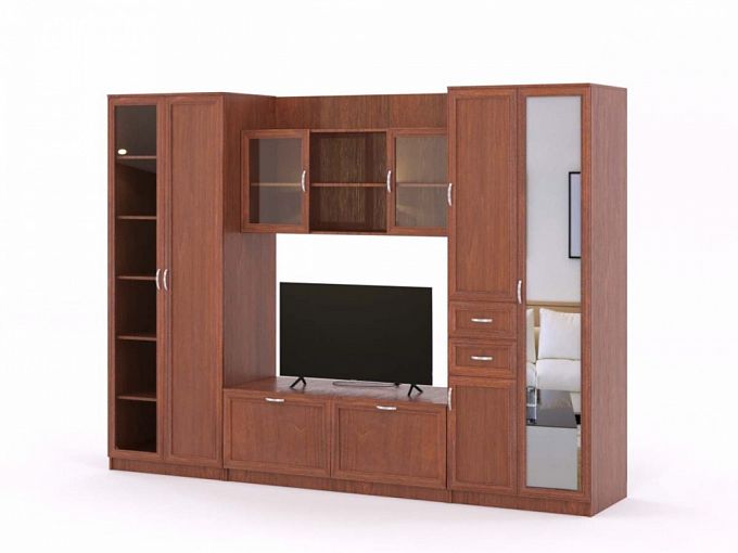 Стенка Альберт 6 BMS отличается гармоничными пропорциями и традиционным дизайном. Классическая линейная модель с рамочными фасадами в насыщенных древесных тонах дополнит интерьер элегантной гостиной. В центре композиции располагается секция с тумбой, нишей под ТВ и полками для книг и декоративных предметов, а по бокам – комбинированный шкаф, пенал и застекленные с двух сторон эффектные витрины, визуально облегчающие конструкцию. Купить стенку Альберт 6 BMS по лучшей цене приглашаем в наш интернет-магазин.