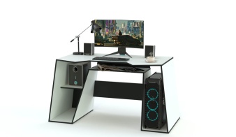 Игровой стол Диего-11 BMS привлекает сочетанием футуристичного дизайна и эргономичности. Яркая модель в белом цвете с черной кромкой отличается стильной геометрией линий и эффектно смотрится в современном интерьере. Стол оборудован столешницей с трапециевидным вырезом и двумя опорными тумбами с нишами под системный блок, аппаратуру и рабочие материалы. Купить игровой стол Диего-11 BMS и компактно разместить все необходимое для продолжительной игровой сессии вам поможет наш интернет-магазин.