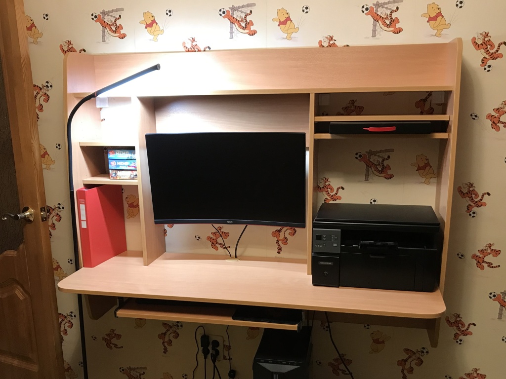 На семидесятилетие, мне, работающей пенсионерке, дети подарили новый компьютер с большим монитором. Хотелось красивый оригинальный компактный стол в цвет имеющейся мебели детской. Там уже был встроенный рабочий стол. Приобрела Компьютерный стол навесной ZeusВМС. Очень довольна покупкой!!! Современный, необычный, сделанный по моим размерам, навесной стол украсил помещение. Стол очень удобный, изящный, не загромождает комнату. Всё находится под рукой. Любуюсь каждый день! Спасибо за такую модель и добротное исполнение.