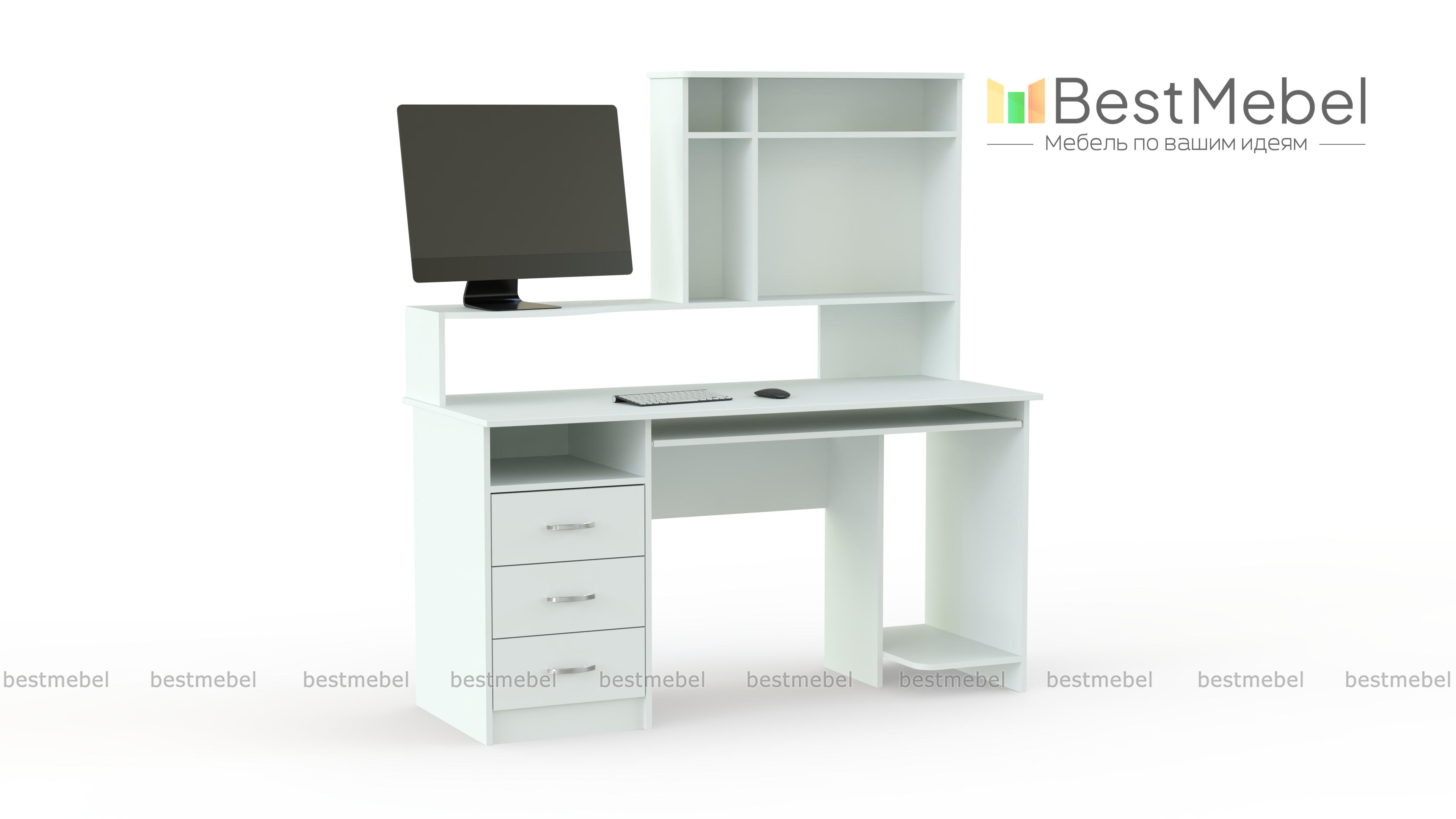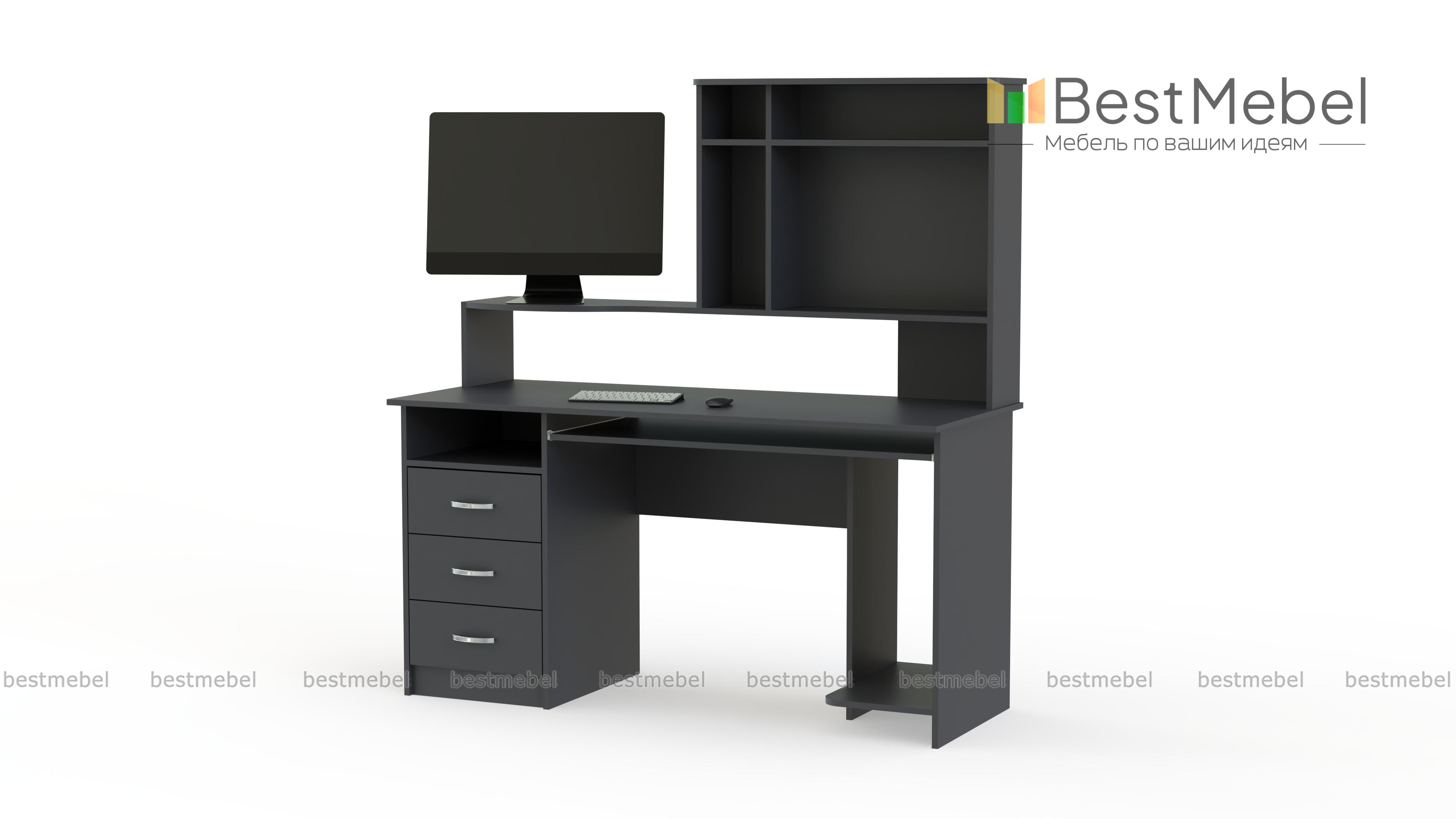Этот стол отлично подойдет для комнаты подростка. Он имеет необходимые специальные места для удобного размещения компьютерной техники, и кроме этого с успехом может исполнять роль письменного стола. За счет специальной полочки для клавиатуры освобождается довольно большая рабочая поверхность. Стол компьютерный ПСК-6 имеет тумбу с тремя выдвижными ящичками и открытую полку для мелочей, учебников и тетрадей. Купить такую модель можно также для сотрудников офисов.