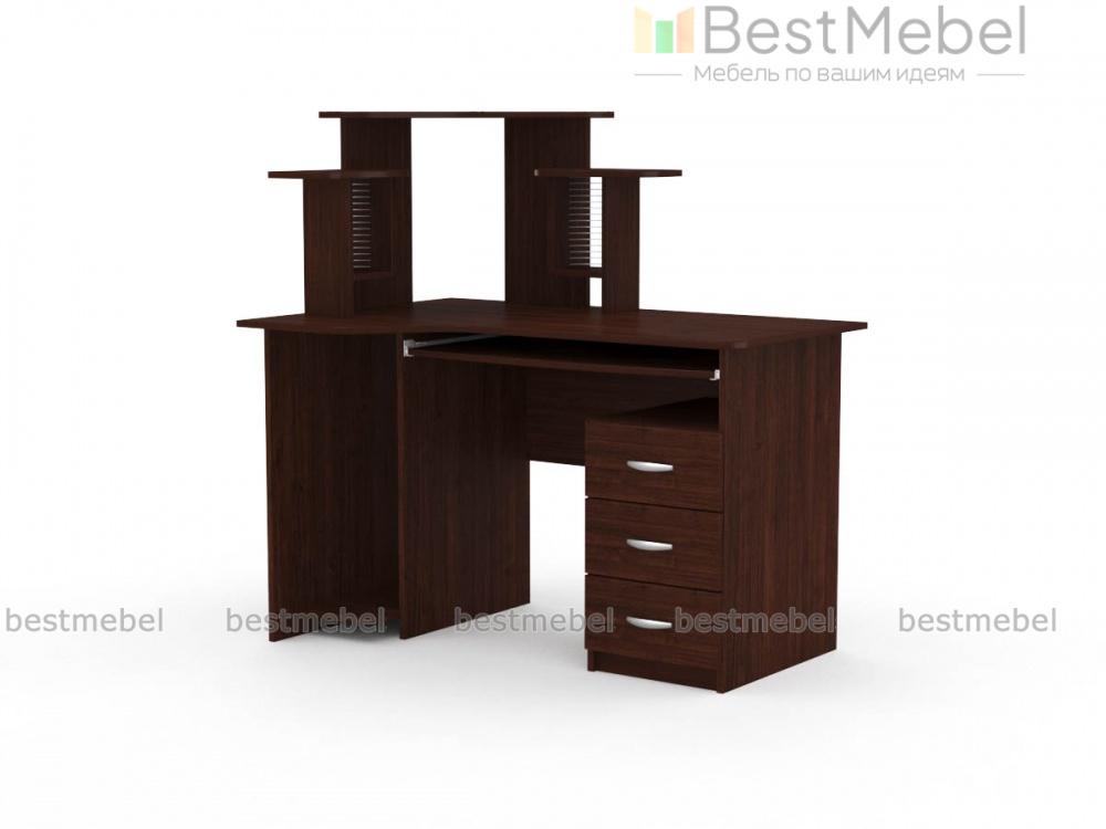 Интересная и оригинальная модель с неординарным расположением полок, которые не только служат украшением, но и предназначаются для удобного расположения монитора и дисков. Стол компьютерный СК-003 имеет специальные места для всех составляющих компьютера, удобное место для клавиатуры. Кроме этого, есть три выдвижных ящика для документов или других бумаг. Купить такую модель можно для активного компьютерного пользователя или ученика. При заказе Вы можете изменить базовые размеры и цвет.