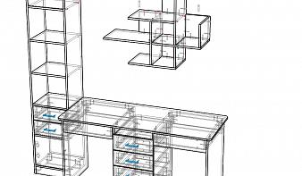 Угловой письменный стол для двоих с полками Веста 2 BMS