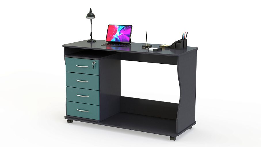 Письменный стол Юниверс 11 BMS, выполненный в сочетании темных древесных тонов и голубого оттенка, гармонично дополнит меблировку детской. Модель выгодно отличается компактными размерами, мобильностью благодаря колесикам и безопасно скруглена по углам. Для удобного хранения канцелярских принадлежностей стол оборудован тумбой с четырьмя выдвижными ящиками. Купить письменный стол Юниверс 11 BMS для письма, работы за ноутбуком и творческих занятий вы сможете в нашем интернет-магазине.
