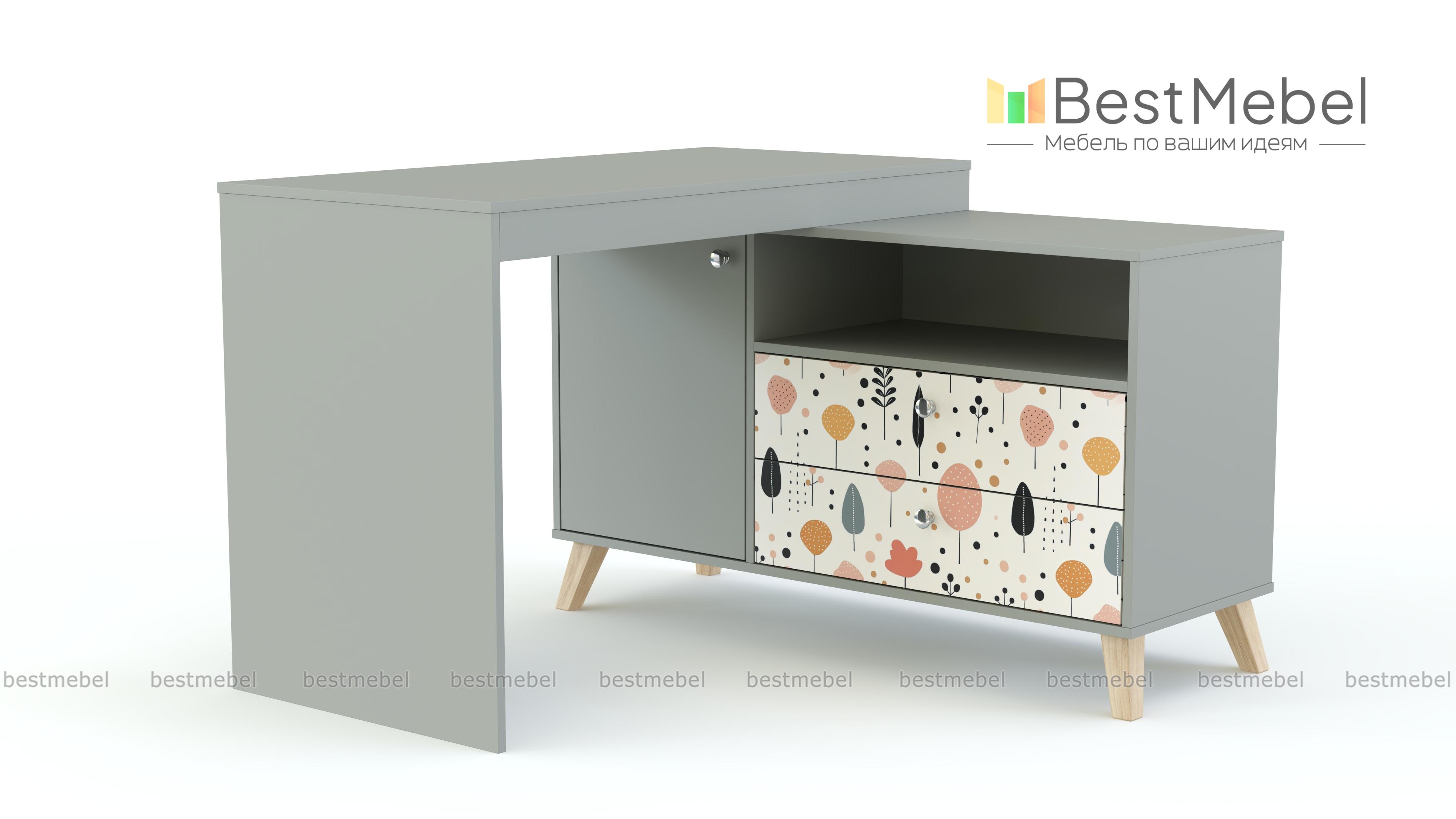 Стол письменный Эльза 1 BMS имеет угловую форму, позволяя задействовать неиспользуемое ранее пространство. Просторная прямоугольная столешница опирается на широкую тумбу, оборудованную распашным отделением, двумя выдвижными ящиками и нишей для хранения тетрадей, папок и учебников. Легкость конструкции обеспечивают высокие ножки и светлая цветовая гамма с нежной акцентной фотопечатью. Купить стол письменный Эльза 1 BMS в оттенках нашего каталога вы сможете на сайте интернет-магазина.