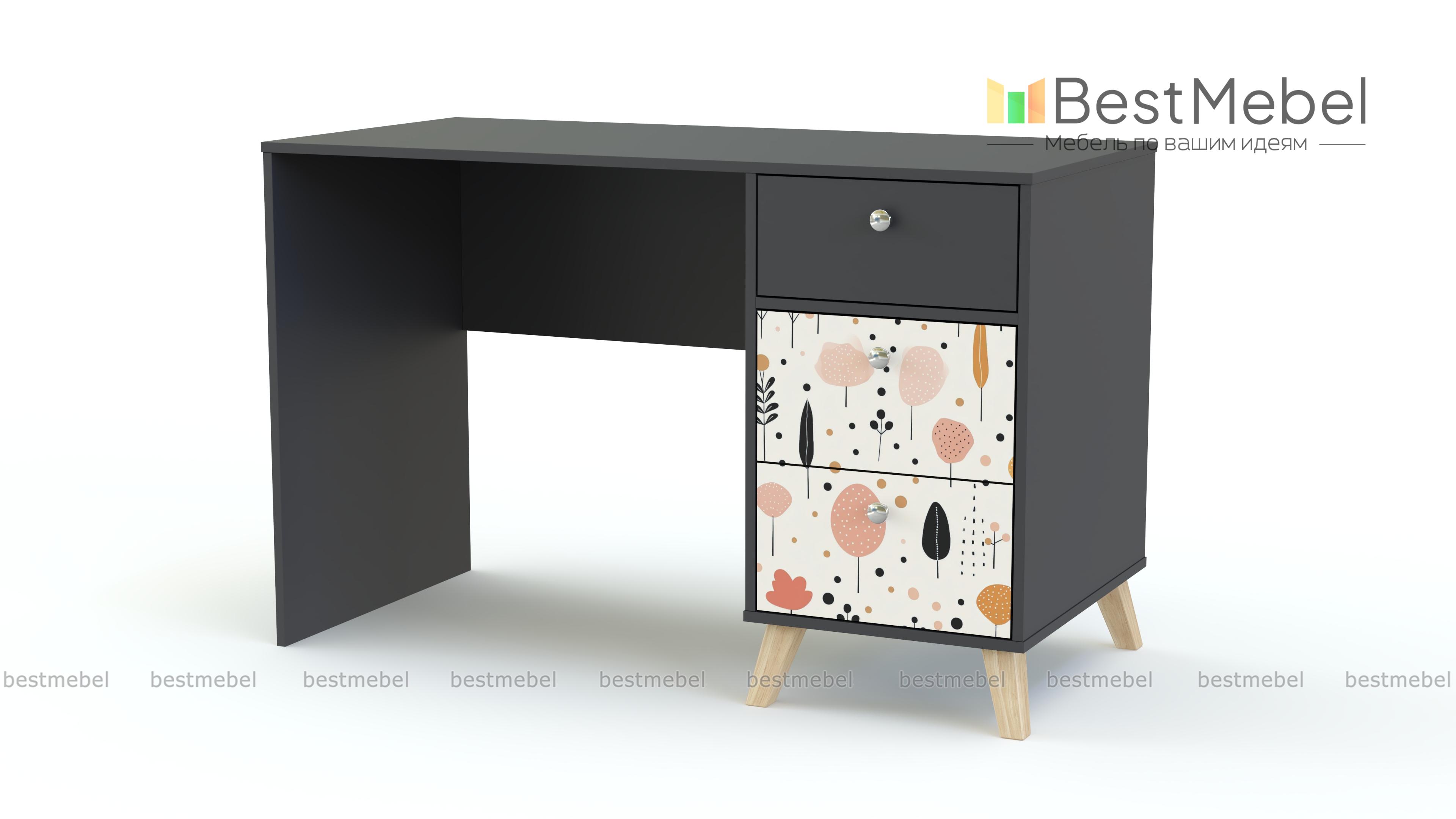 Стол письменный Эльза 5 BMS обеспечит комфортное положение во время учебы или занятий творчеством. Модель имеет просторную рабочую поверхность и тумбу с выдвижными ящиками для хранения под рукой канцелярских мелочей. Оборудованный высокими сканди-ножками и украшенный фотопечатью, стол гармонично впишется в современный детский интерьер. Купить стол письменный Эльза 5 BMS приглашаем в наш интернет-магазин с индивидуальным подбором цвета и размеров.