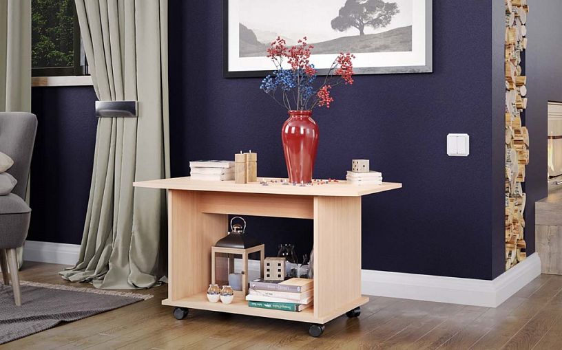 Отлично подошёл в гостиную. Очень удобно наличие полки для посуды или журналов.