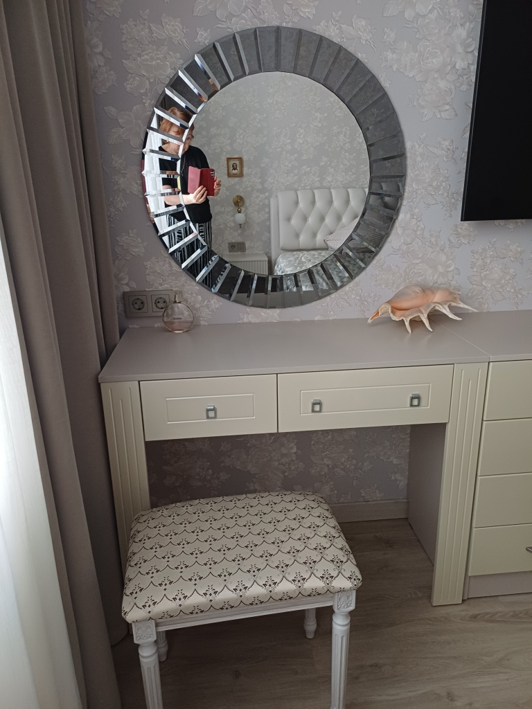 Приобрела столик вместе с комодом. Дл я меня важным было сделать в динаковом цвете и в нужном мне размере. Все получилось. Хотя в нашем городе нет представительства фабрики пришлось заказывать цвет на страх и риск. Но все сложилось замечательно. Рекомендую !!!!