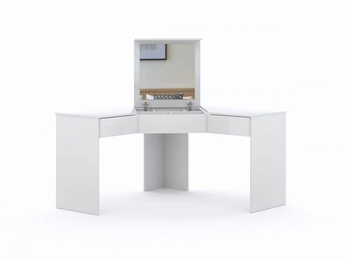 Столик Глянец-10 BMS будет особенно актуален в условиях экономии полезной площади. Практичная модель объединила функции туалетного и рабочего стола, позволяя разместить как письменные принадлежности или ноутбук, так и уходовые средства. Навесной угловой столик, выполненный в белом глянце, оборудован откидной столешницей, с внутренней стороны которой располагается зеркало, отделением для мелочей и двумя выдвижными ящиками. Купить столик Глянец-10 BMS по доступной цене приглашаем в наш интернет-магазин.