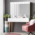 Туалетный столик с подсветкой Глэм 1 BMS – функциональная модель, отвечающая современным мебельным тенденциям. Визуально легкий столик на высоких скошенных ножках оборудован широкой столешницей, дополненной выдвижным ящиком, и большим зеркалом со встроенными светодиодными лампочками. Разделенный перегородками на отсеки, ящик поможет разместить под рукой все необходимые уходовые средства, косметику и аксессуары, а ровное освещение станет залогом удачного макияжа. Купить туалетный столик с подсветкой Глэм 1 BMS приглашаем в наш интернет-магазин.