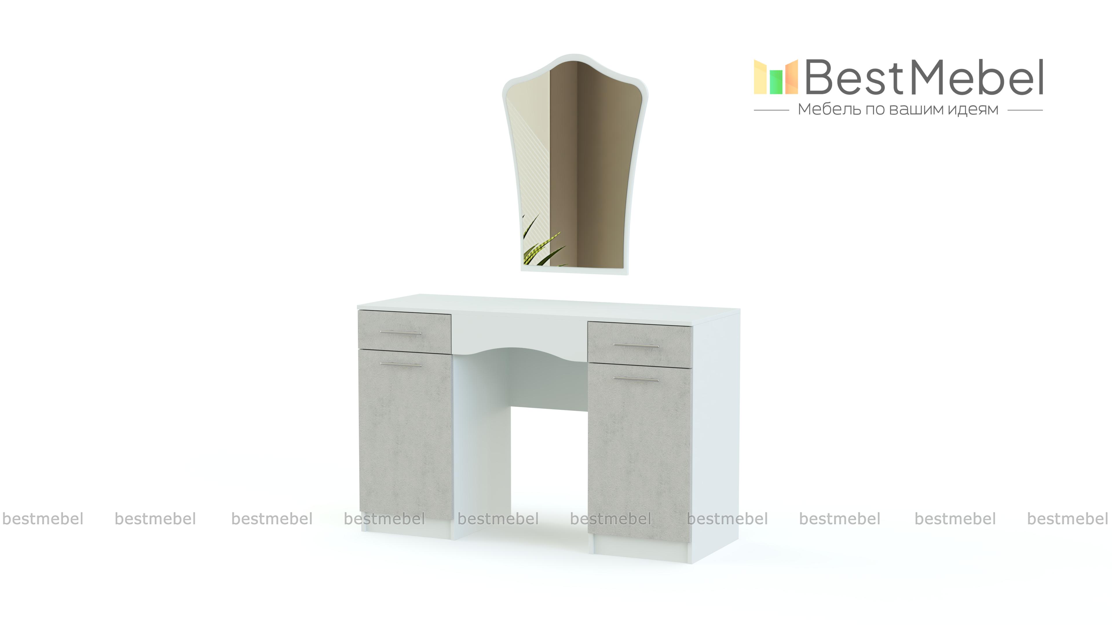 Туалетный столик СП-483 BMS поможет расположить большое количество всех необходимых уходовых средств и декоративной косметики благодаря продуманной и вместительной конструкции. Модель, выполненная в контрастном сочетании темных и светлых оттенков, укомплектована двумя выдвижными ящиками для хранения мелочей, двумя распашными отделениями с полками и широкой столешницей, на которой вы можете разместить под рукой все предметы первой необходимости. Эстетическую завершенность изделию придает фигурное зеркало, которое можно разместить на любой удобной высоте. Купить туалетный столик СП-483 BMS приглашаем в наш интернет-магазин.