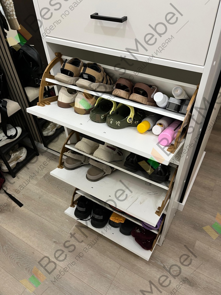 Тумба для обуви Вайт 8 BMS станет элегантным дополнением современной прихожей и обеспечит экономию пространства. Компактная и вместительная благодаря высоте модель оборудована тремя откидными отделениями под обувь и выдвижным ящичком для уходовых средств и прочих мелочей в верхней части. Практичный корпус в светлых тонах дополнен эффектным фасадом в сером глянце, который визуально делает помещение просторнее и светлее. Купить тумбу для обуви Вайт 8 BMS вы сможете в нашем интернет-магазине.
