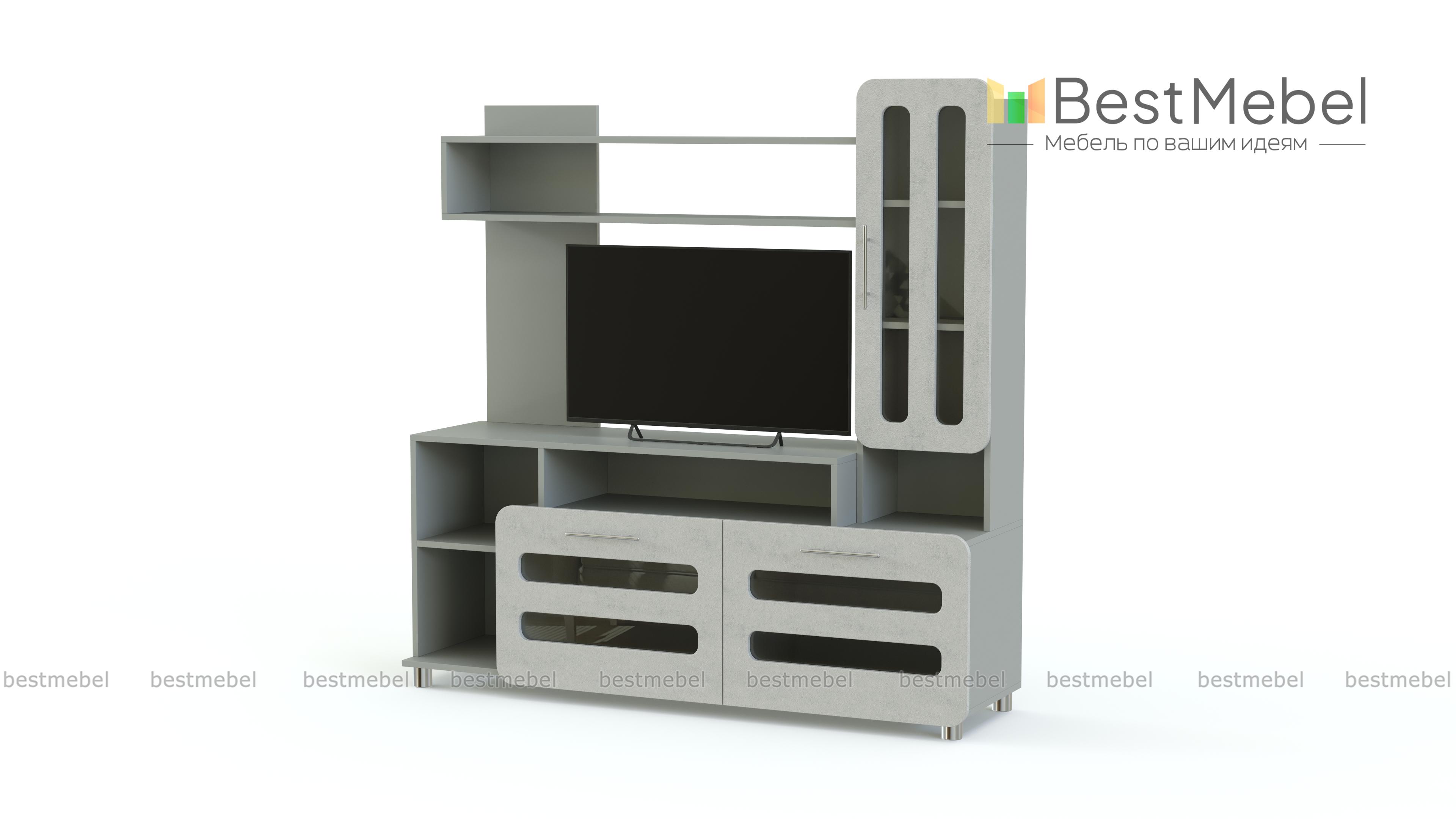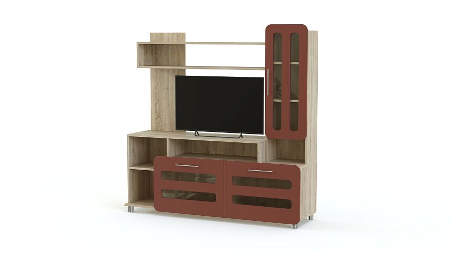 Тумба под ТВ Ф-11 BMS – вместительная модель, которая станет отличным дополнением интерьера современной гостиной или детской комнаты. Модель оборудована всем необходимым для удобного размещения ТВ, книг и множества мелочей. Под просторной столешницей располагается ниша, открытые полки и вместительные откидные секции, дополняют тумбу застекленный шкафчик с полками и открытая полка-надстройка. Особенно оригинальный вид модели придают яркие матовые фасады. Купить тумбу под ТВ Ф-11 BMS приглашаем в наш интернет-магазин.